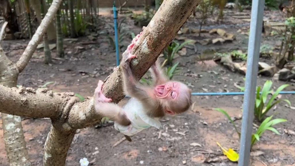 Little Linda was taken outside by Mommy to play near a big tree. Usually, climbing and exploring trees can be fun for baby monkeys, but…