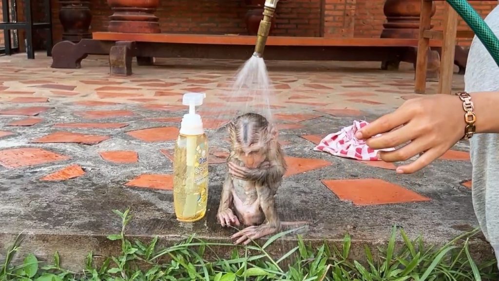 The little newborn lay trembling, her tiny body covered in dirt and dust. Her fur was matted, her skin barely visible beneath the grime. She…