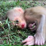 The newborn baby monkey lay weak and tired, his tiny body covered in dirt from the harsh start to his life. His fur was matted,…